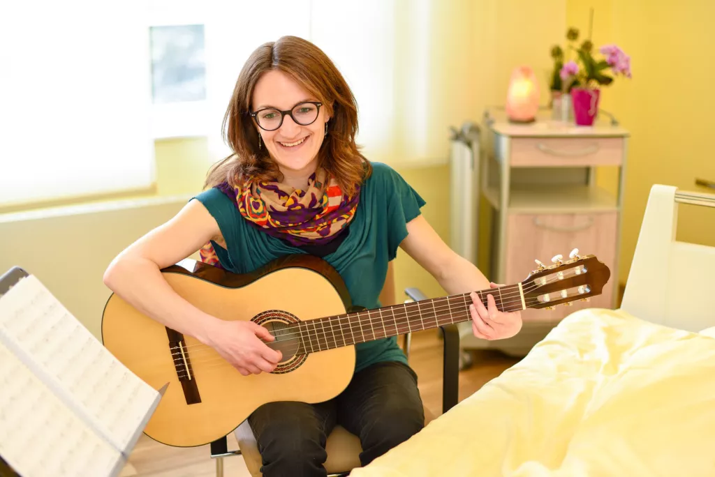 Musik- und Kunsttherapie haben in unserer ganzheitlichen Behandlung eine wichtige Rolle. Beide können zu Entspannung beitragen, Schmerzempfinden lindern, Unruhe und Angst verringern, den Atem regulieren und insgesamt zu einer Verbesserung des Wohlbefindens beitragen. Wir wollen mit diesen Therapieformen Kontakt und Interaktion Kranker fördern, die individuelle Biografiearbeit erleichtern und deren Ausdrucksfähigkeit unterstützen.