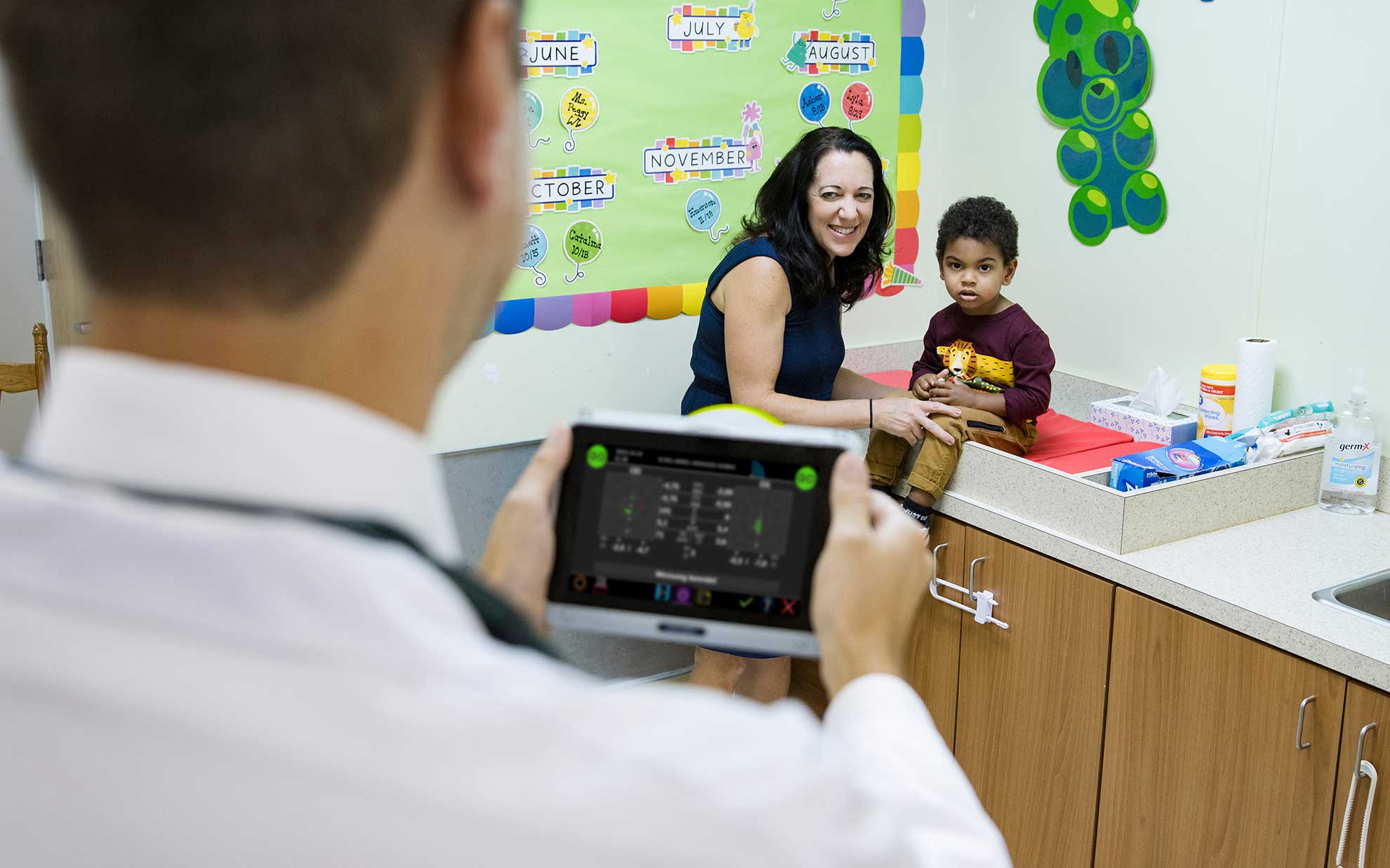 Beim Augenarzt ist Paul nervös und sucht Schutz bei seiner Mama. Doch plötzlich wandelt sich die Situation: Der nette Arzt hält Paul ein lustiges Smiley-Gesicht entgegen, das freundliche Geräusche macht. Neugierig blinzelt Paul und schaut schnell hin. In Sekundenschnelle führt das Gerät eine präzise Messung durch und der Augenarzt kann am Gerät wichtige Daten über Pauls Augen ablesen.